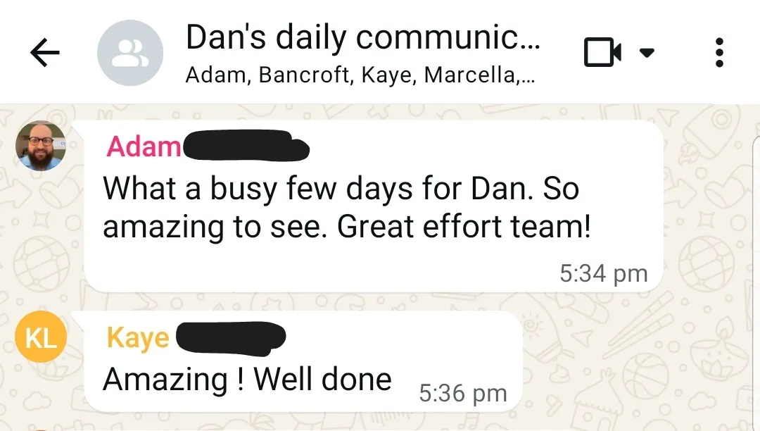 As often as needed. We believe no news shouldn’t mean no communication. Families can expect regular updates and honest conversations. We offer weekly updates on any in-home activities and we open a "family chat" on a communication channel of your choosing. WhatsApp is often the preferred channel.